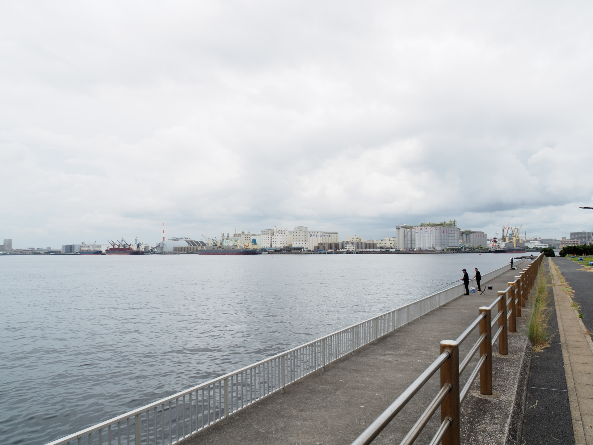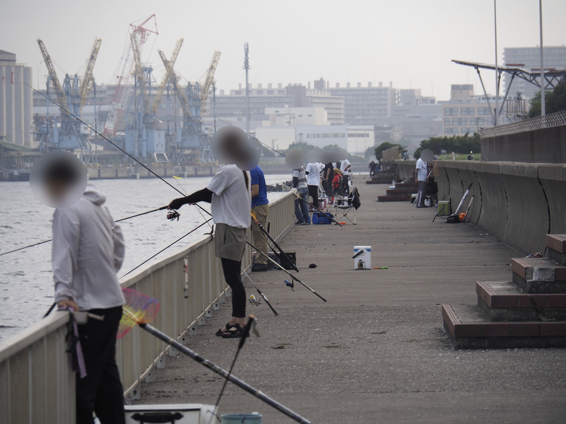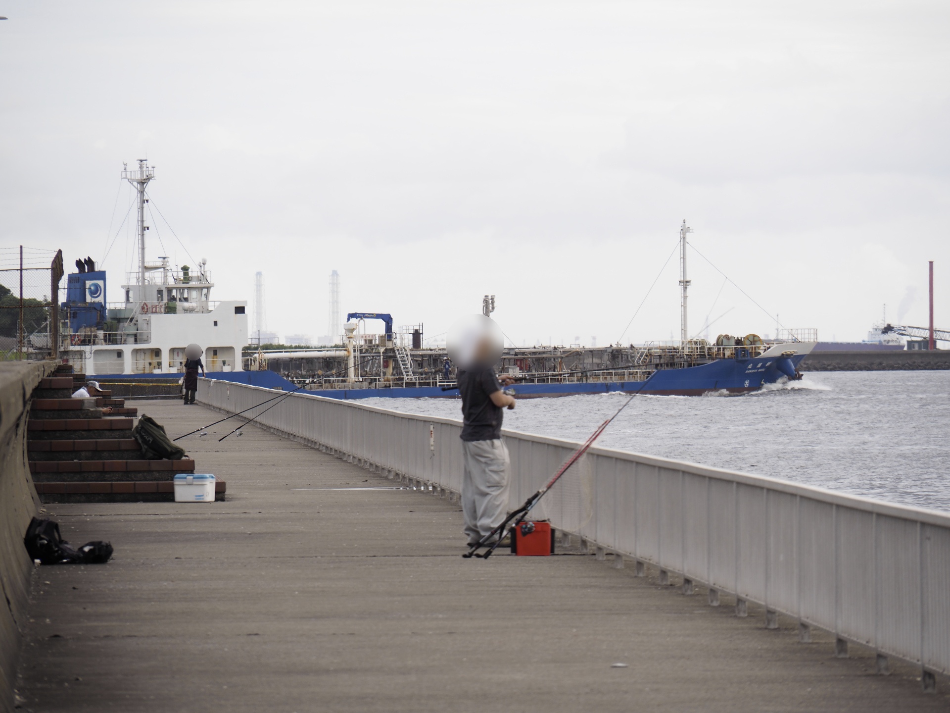 大型船の往来が激しく曳き波が四六時中押し寄せる。埠頭左端は潮通しがいいが、目の前を大型船が通過するので気安くは投げられない。外房と比べると水はどす黒く汚い。夏場は頻繁に青潮が発生し魚が全滅してしまう。こうなると二週間は釣りにならないそうだ。